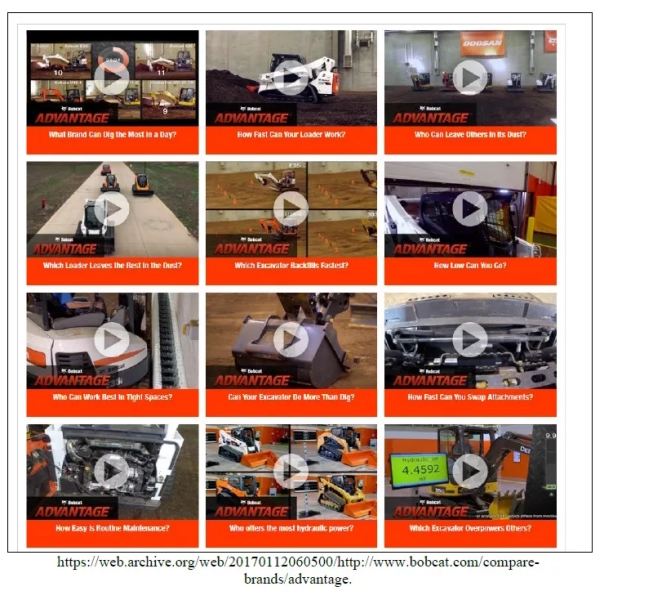 In the filing, attorneys for Caterpillar say videos once used on the site prove it was Doosan Bobcat that was analyzing Caterpillar equipment. «The ‘Bobcat Advantage” videos further confirm Doosan’s identification of Caterpillar as a competitor and Doosan’s extensive competitive intelligence about Caterpillar, including the possession and use of Cat machines,» the document reads.