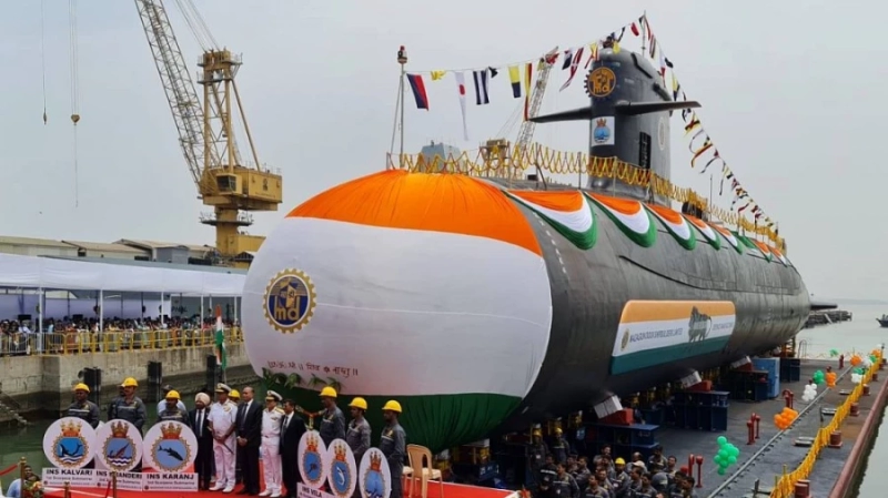 Спуск на воду дизель-электрической подводной лодки «Вагшир» индийских ВМС. Иллюстративное фото: Naval Group.