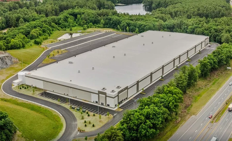 Marketing materials for the site illustrate the scale of the potential conversion. According to a Cushman & Wakefield brochure, the property totals about 324,000 sq ft, including roughly 321,000 sq ft of warehouse space and 3,400 sq ft of office, on a 43-acre site in Merrimack Technology Park. The Class A facility features 36-ft clear heights, 55 tailboard loading docks, two drive-in doors, ESFR sprinklers, a 7-in concrete slab and 6,000 amps of electrical service.