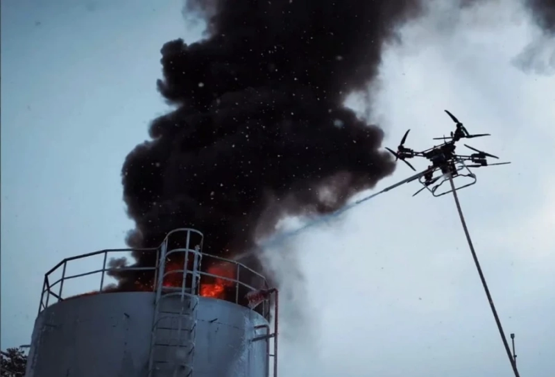 В департаменте информполитики региона сообщили, что аппарат поднялся на высоту 12 м, провел тепловизионную разведку и подал огнетушащее вещество в очаг горения. Испытания проводили в связке с наземной установкой компрессионной пены. Комплекс разворачивается всего за 5–10 минут, и полная ликвидация возгорания заняла 3,5 минуты.