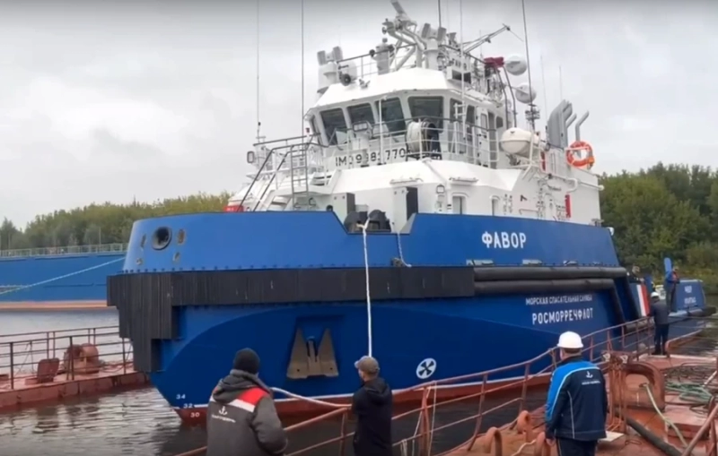 Вывод буксира «Фавор» на испытания в начале сентября 2025 года. Скриншот видео: «Окская судоверфь».